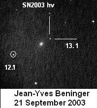 Supernova 2003hv (strong Silicone lines at maximum light) Click here to see a reference image before SN 2003hv activity |